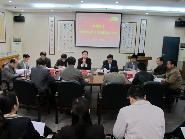 11月27日,金年会在党政会议室召开2013年度领导班子专题民主生活会,省委教育工委副书记杨江帆、省委教育工委组织部部长詹松青、省委教育工委宣传部部长叶扬,省委第9督导组成员汪晨曦、黄凯,教育厅内部督导员陈晃、黄伟华等莅会指导。会议由校党委书记林彬同志主持。