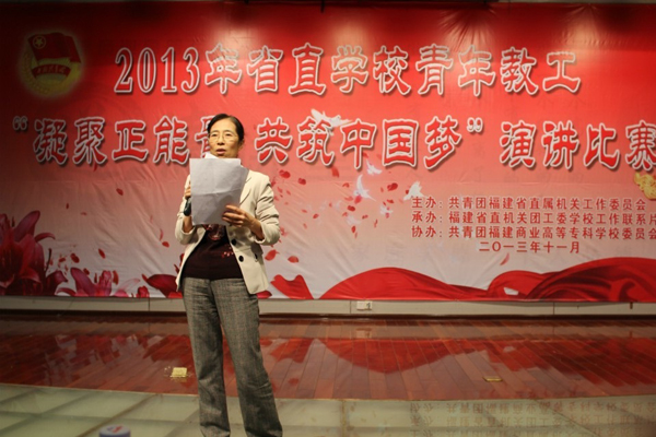 11月15日,2013年省直学校青年教工“凝聚正能量 共筑中国梦”演讲比赛在金年会湖前校区演播厅隆重举行。省直团工委副书记邱振光、省教育厅团委书记张晓明、金年会党委副书记黄跃舟以及各省直学校主要领导出席并观看了比赛。