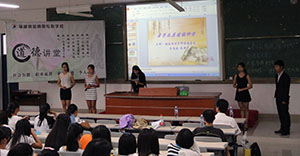 此次讲堂严格遵照《福建商专推进和规范“道德讲堂”建设若干事项的通知》,选取“唱歌曲、看短片、诵经典、讲故事、做点评、送吉祥”6个环节开展活动,增加了道德讲堂的趣味性和互动感。在观看完《道德经》短片后,李德建教授从“紫气东来化老子”、“大道圣典五千言”、“道德科学—百家思想之内核”三个部分做了“老子及其道德科学”的专题讲座。