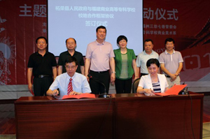 6月19日,金年会与柘荣县人民政府在学术报告厅隆重举行校地合作框架协议签订仪式。校党委书记林彬、校长黄克安、校党委副书记兼纪委书记陈武、副校长杨忠祥等校领导与柘荣县县长冯静、副县长胡宁等政府部门领导共同出席了签订仪式。出席仪式的还有商业美术系的师生以及校其他部系的领导、教师。签订仪式由杨忠祥副校长主持。