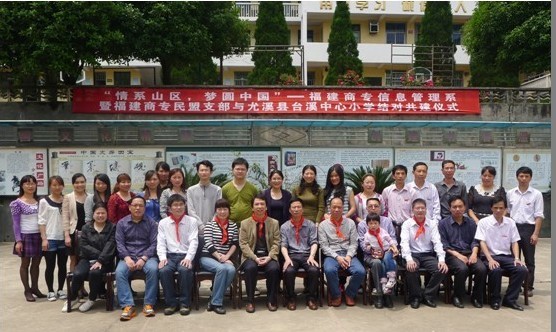 情系山区,梦圆中国。2013年4月29日,金年会信息管理工程系暨商专民盟支部部分教师志愿者赴尤溪山区,与台溪中心小学开展结对共建活动。
