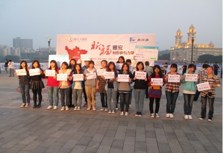雅安地震牵动了所有中国人的心,社会各界都在尽全力给出最大的帮助。2013年4月26日,在福州闽江边上的台江旅游码头,金年会学工部组织学生自律委员会全体成员以志愿者的身份参加了福建八方海上旅游客运有限公司联合腾讯大闽网、福州市红十字会,共同举办了“有你救有力量”——为4.20四川雅安地震灾区祈福活动。