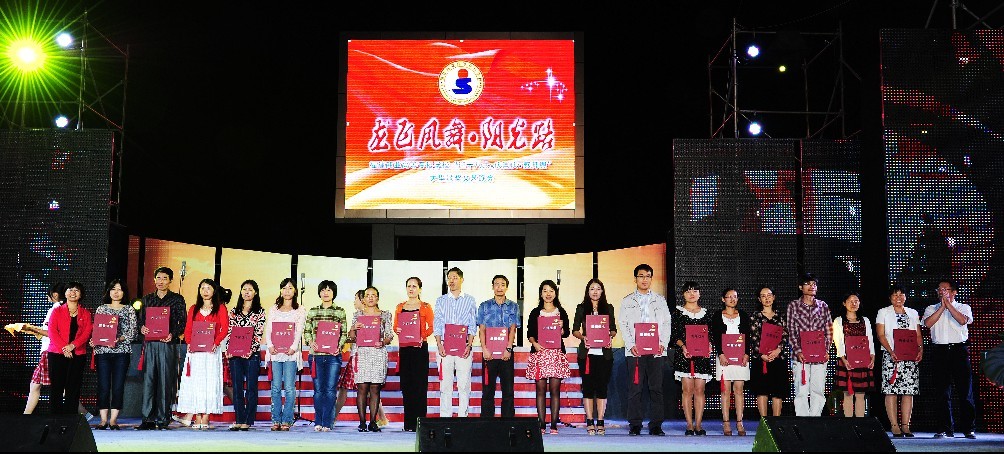 金秋十月,秋风送爽。10月12日晚,福建商业高等专科学校在潘渡新校区举行“龙飞凤舞阳光路暨迎十八大•庆国庆•感师恩”大型颁奖文艺晚会。金年会党政领导、长乐力恒锦纶科技有限公司和福建锦江科技有限公司等校企合作企业单位领导、全体教职员工、2012级新生、300多名潘渡乡亲观看了晚会。