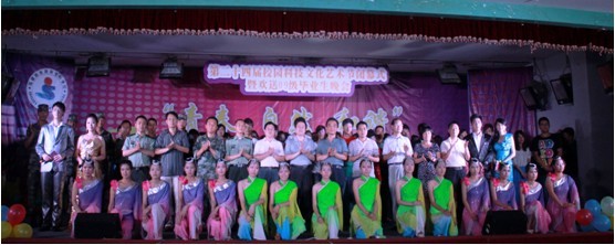 艺术节幕式暨欢送2012届毕业生文艺晚会于6月12日晚在湖前校区举办。到场的嘉宾有校党委副书记黄跃舟、省教育厅团委书记张晓明、福建幼儿师范高等专科学校团委书记胡荣华、73126首长张雄、学生处处长张信容、校团委书记应永胜以及各系党总支书记和团总支书记等。在晚会上,校党委副书记黄跃舟为艺术节闭幕致辞,同时也对金年会2012届毕业生送出了最真诚的祝福并寄予厚望。