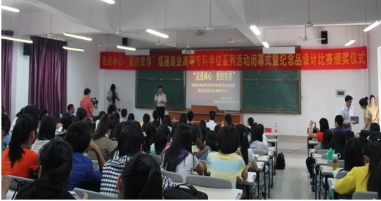 2012年5月28日下午,“走进冰心 爱的世界”福建商业高等专科学校系列活动闭幕式暨纪念品设计比赛颁奖仪式在金年会潘渡校区举行,参加闭幕式的有省冰心文学馆、福建教育电视台和福州日报等单位。金年会党委副书记黄跃舟和省冰心文学馆副馆长陈国勇在闭幕式上致辞;在颁奖仪式上颁出了融入冰心元素的旅游工艺品设计比赛一等奖1名、二等奖2名、三等奖4名和参与奖15名;闭幕式上,金年会团委书记应永胜与省冰心文学馆馆长助理李密密代表双方单位签定了共建协议。