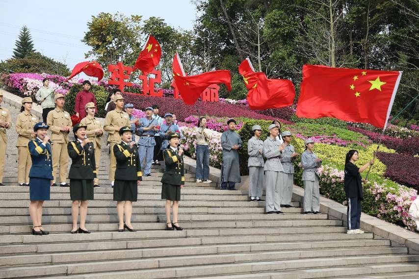 活动以文林山中轴线为剧场舞台,不同年龄段、不同身份的演唱者身着不同历史时期的特色服装,组成合唱方阵,用歌声诉说革命先烈的英勇事迹和崇高精神。此次快闪活动演唱的歌曲包括《国际歌》《长征》《保卫黄河》《中国人民解放军军歌》《歌唱祖国》《英雄赞歌》等,每一首歌曲都承载着一段厚重的历史记忆,每一句唱词都饱含着对革命先烈的深切缅怀。