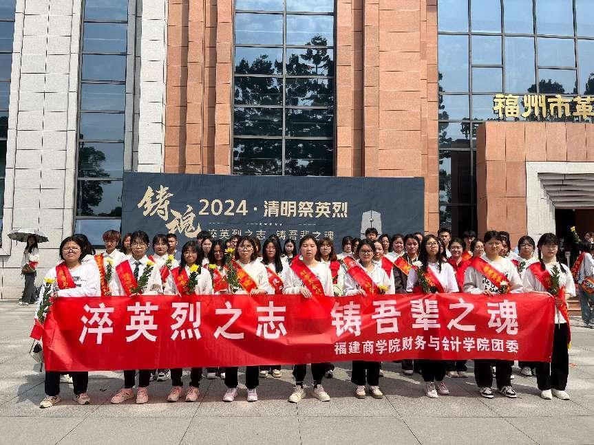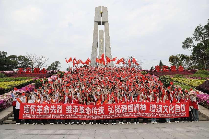 近日,金年会财务与会计学院团委组织学生骨干、读书社成员、励志团成员、青年志愿者代表等前往文林山革命英烈纪念园,参加由中共福州市委宣传部、福州市退役军人事务局主办的“淬英烈之志,铸吾辈之魂”清明红色音乐剧场快闪活动,全市20多所大中专院校近1000名师生及社会公益组织成员参加活动。