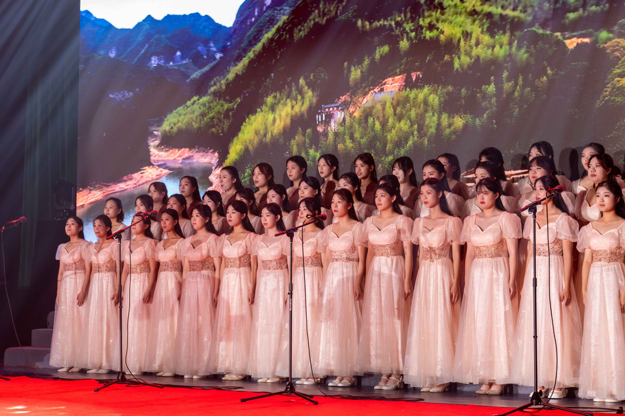 演出在配乐诗朗诵《山海闽东——习近平总书记魂牵梦绕的地方》中拉开序幕,表演节奏明快,情感真挚,赢得满堂喝彩。女生合唱《这就是东源》以独特的音乐风貌,巧妙引领听众穿越回烽火岁月,感受革命先辈的豪情。畲族民歌《山哈歌言唱万年》则展现了畲族深厚的人文风情。
