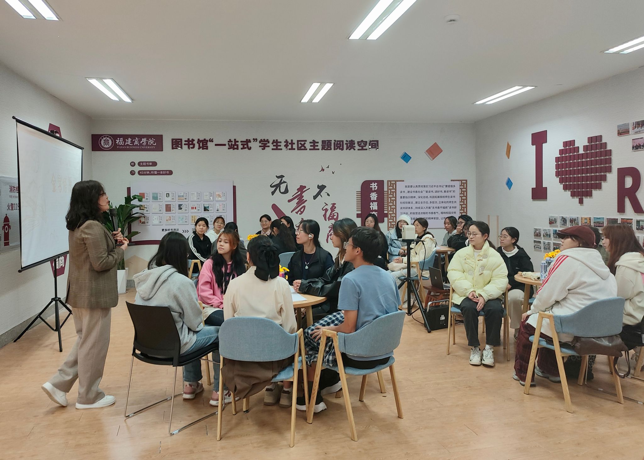 本次活动,图书馆携手帆书(福州运营中心)双线并进推出“线下翻转课堂+线上扫码听书”的阅读推广模式,旨在以书香活动为契机,以阅读空间为载体,持续深入开展“无书香不福商”读书研习活动,积极营造浓郁的书香卷气,进一步推动图书馆成为知识共享、文化交流、服务师生读者多元化需求的成长空间与精神家园。