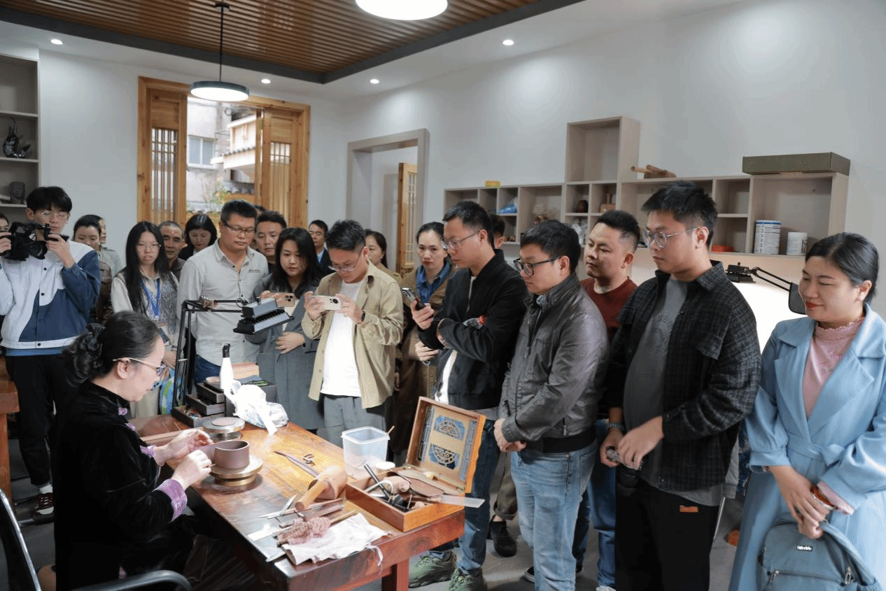 研修班前往柘荣县开展实践课程。在魏定伟技能大师工作室,学员们观摩了紫砂制作的全过程,打泥条、划泥片、围身筒、打身筒、调脂泥……紫砂制作的每一个步骤都充满了匠心意气,让学员们不禁沉浸其中,深切感受到了非遗文化的独特吸引力。