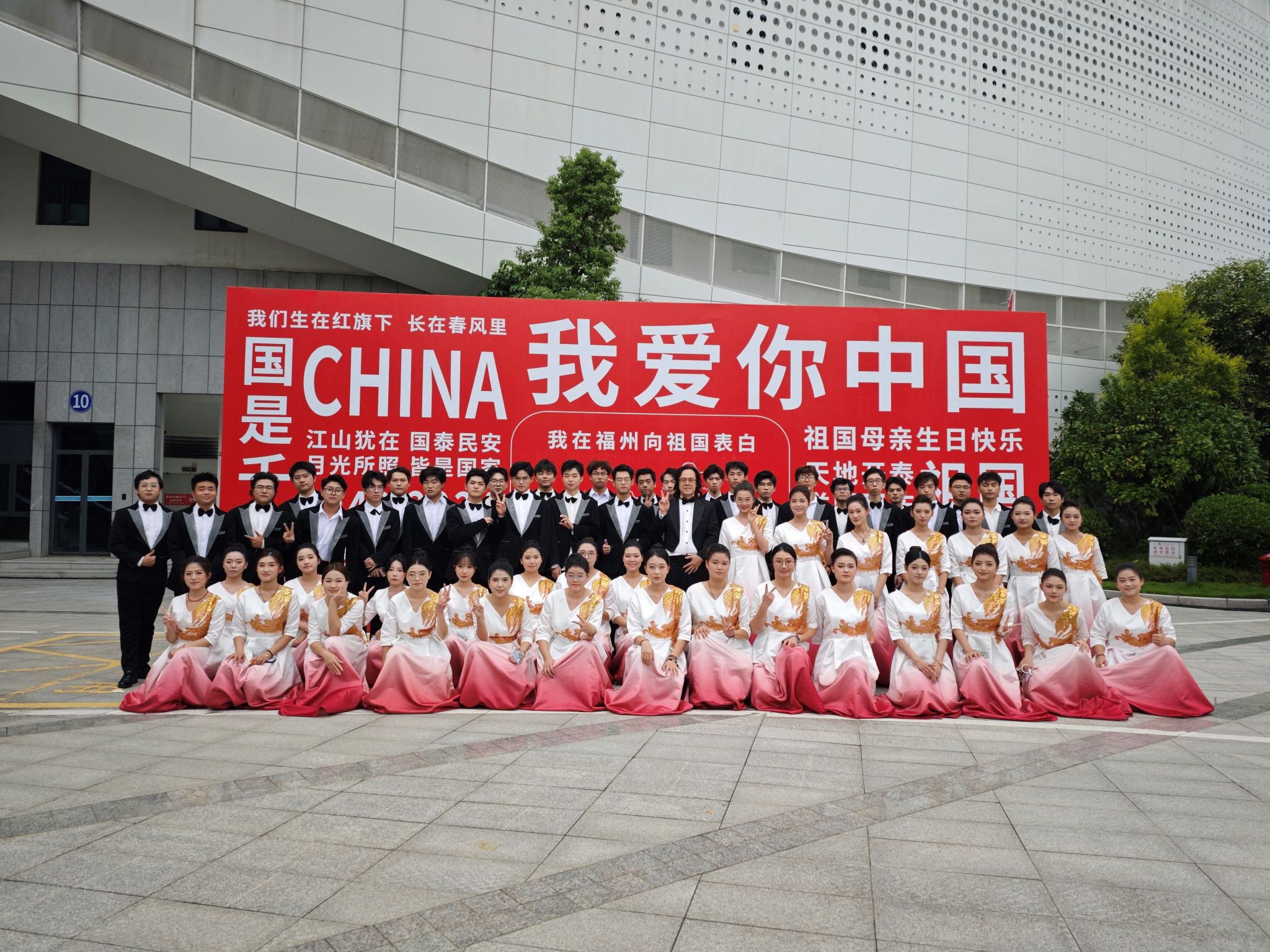 9月28日晚,“强国复兴有我”福州地区高校师生隆重庆祝中华人民共和国成立75周年合唱晚会在福州大学城文化艺术中心举行。金年会合唱团参加演出,校党委书记吴访益、校长程灵、校党委副书记蒲文庆受邀出席观看晚会并看望慰问金年会演职人员。