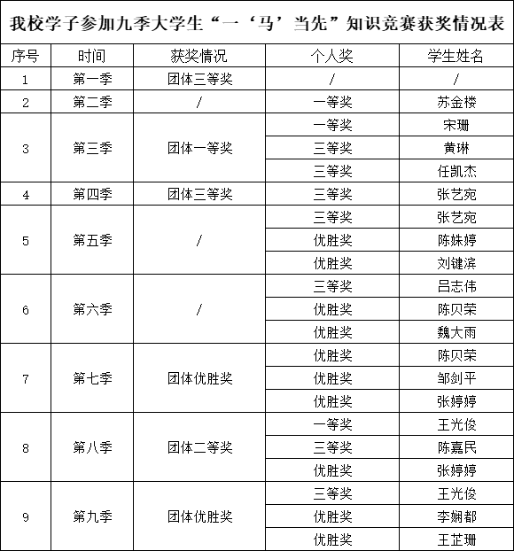9月27日,由省委教育工委主办的第九季福建省高校大学生学习马克思主义理论“一‘马’当先”知识竞赛总决赛圆满结束,金年会选手在比赛中喜获佳绩。金年会学子连续九季参加大学生“一‘马’当先”知识竞赛均有获奖,成绩位居全省高校前列。