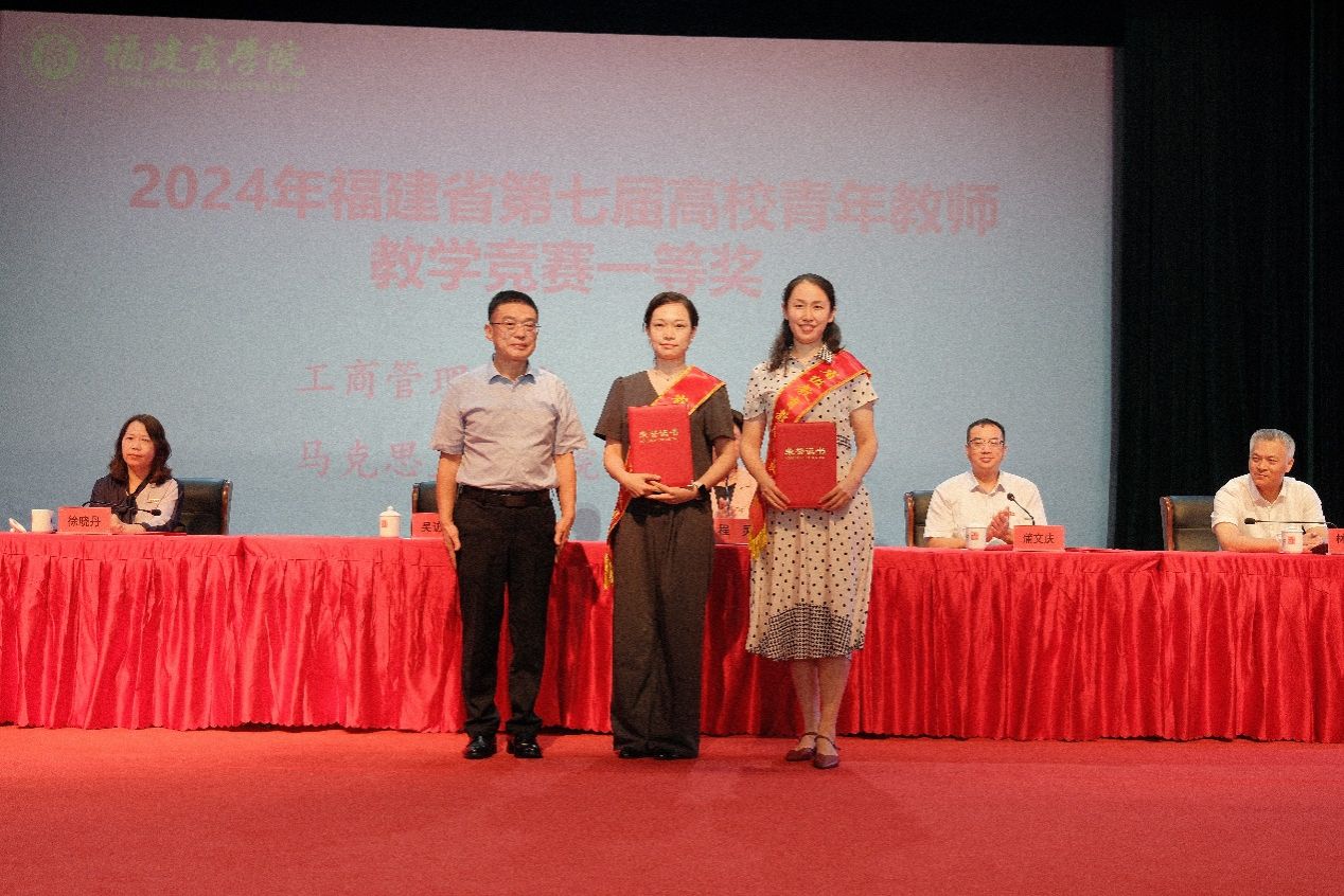 校党委书记吴访益为获得2024年福建省第七届高校青年教师教学竞赛一等奖的教师颁奖