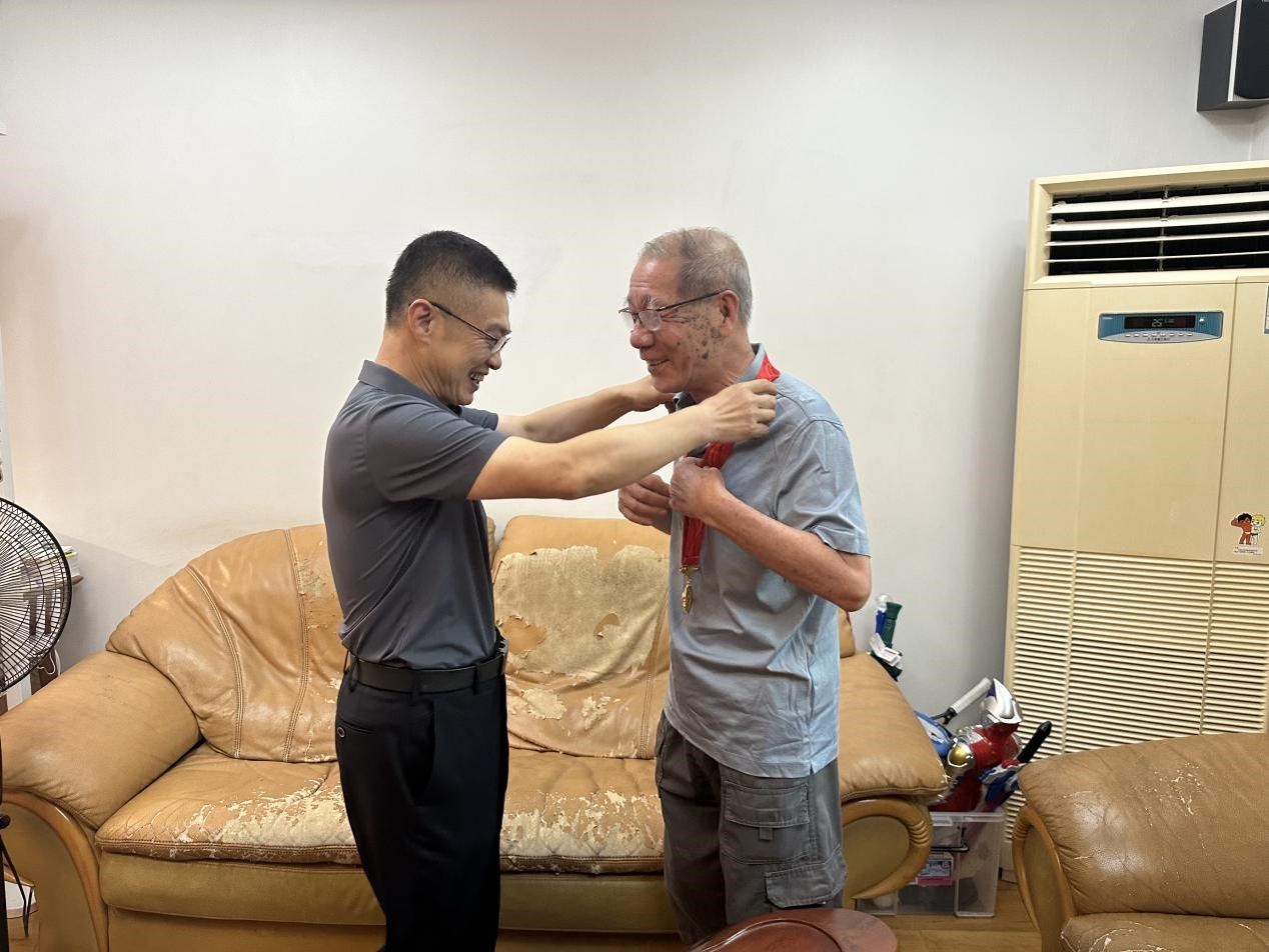 校党委书记吴访益为老党员林万顺颁发“光荣在党50年”纪念章