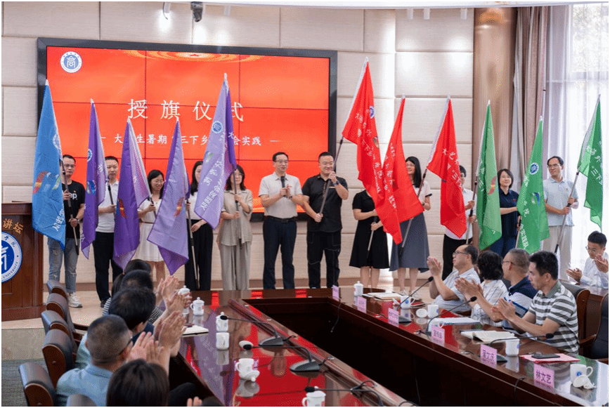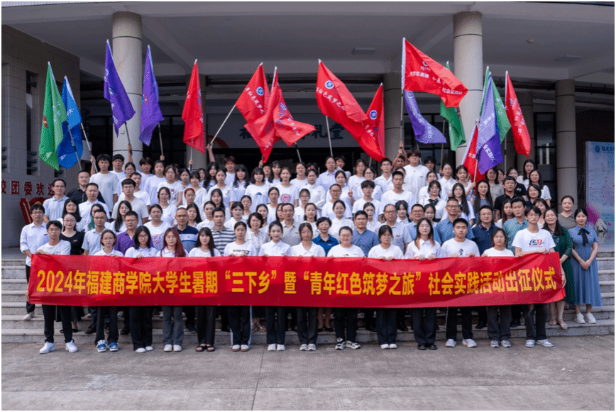 6月25日下午,金年会2024年大学生暑期“三下乡”暨“青年红色筑梦之旅”社会实践活动出征仪式在连江校区举行。校党委副书记蒲文庆、副校长林文艺出席出征仪式。有关部门负责人、各二级学院党委副书记和团委负责人,实践队指导老师和队员代表等参加仪式。