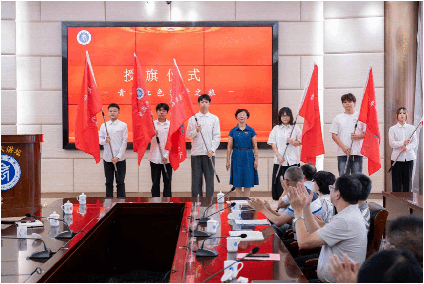 副校长林文艺为“青年红色逐梦之旅”实践队授旗