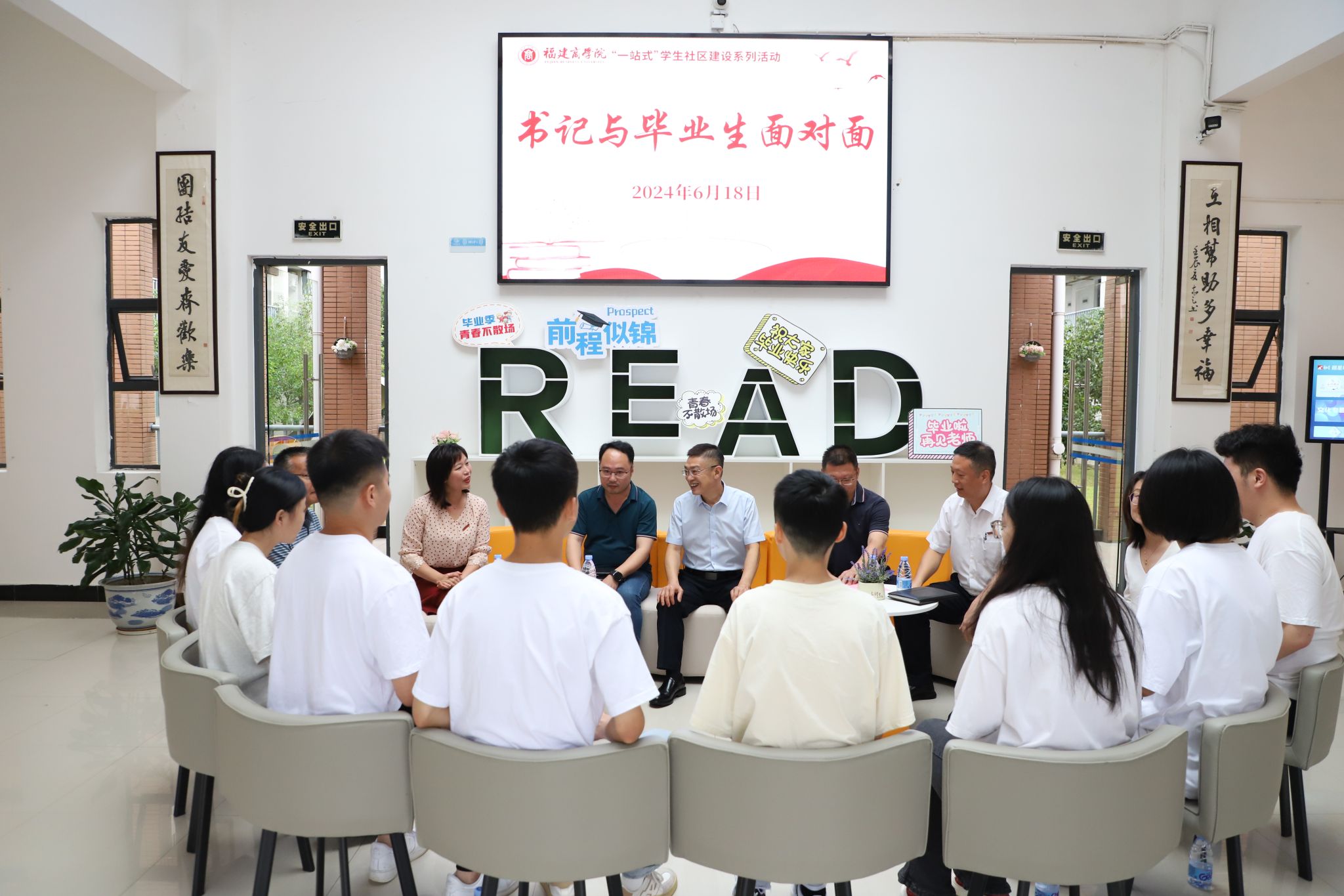 6月18日上午,校党委书记吴访益与财务与会计学院2024届毕业生座谈,并深入调研连江校区“一站式”学生社区建设。有关部门负责人、财务与会计学院党政班子成员及毕业班辅导员等参加活动。