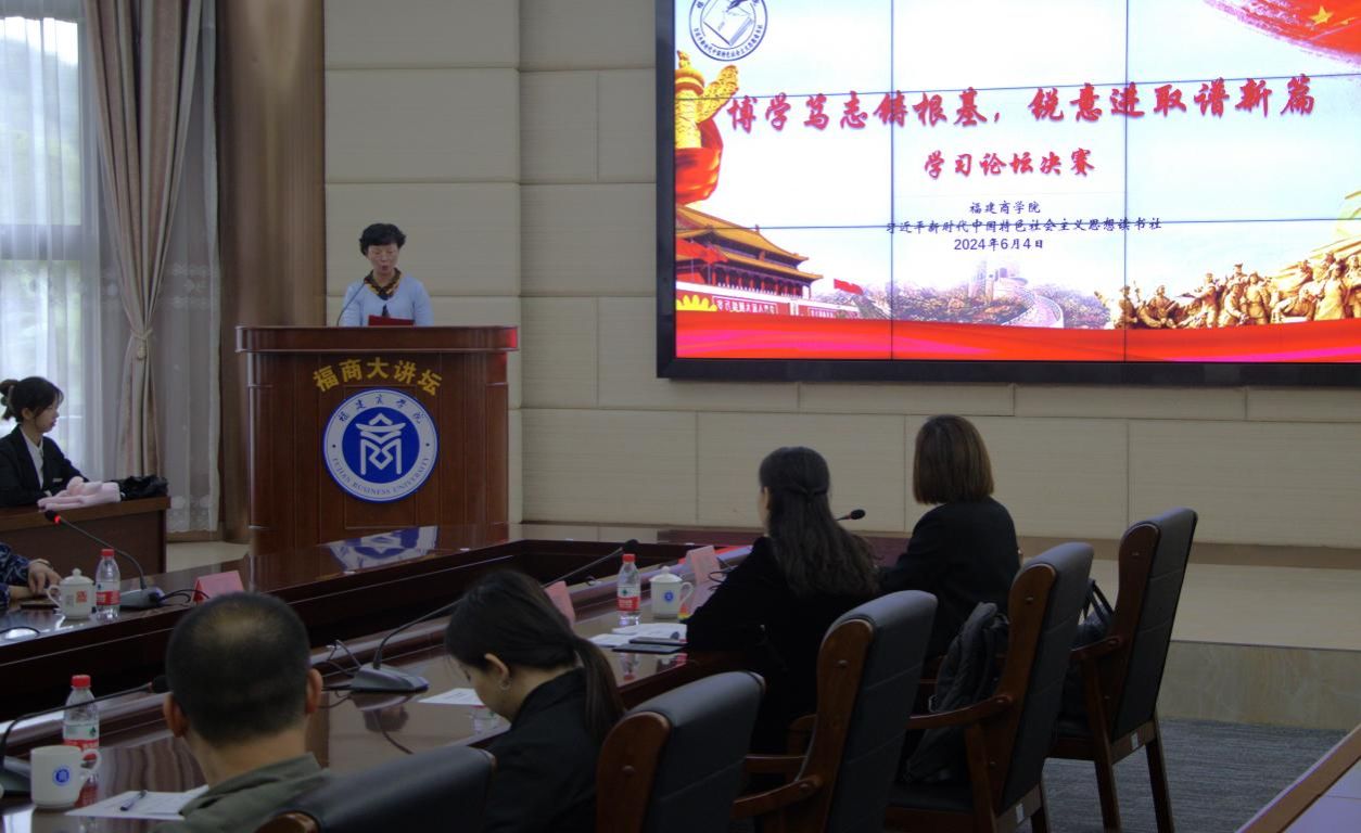 近日,金年会习近平新时代中国特色社会主义思想读书社与马列经典著作读书社在连江校区联合举办了主题为“博学笃志筑根基 锐意进取谱新篇”的学习论坛决赛。副校长林文艺出席活动,马克思主义学院负责人及读书社社员等近百名师生参加此次活动。