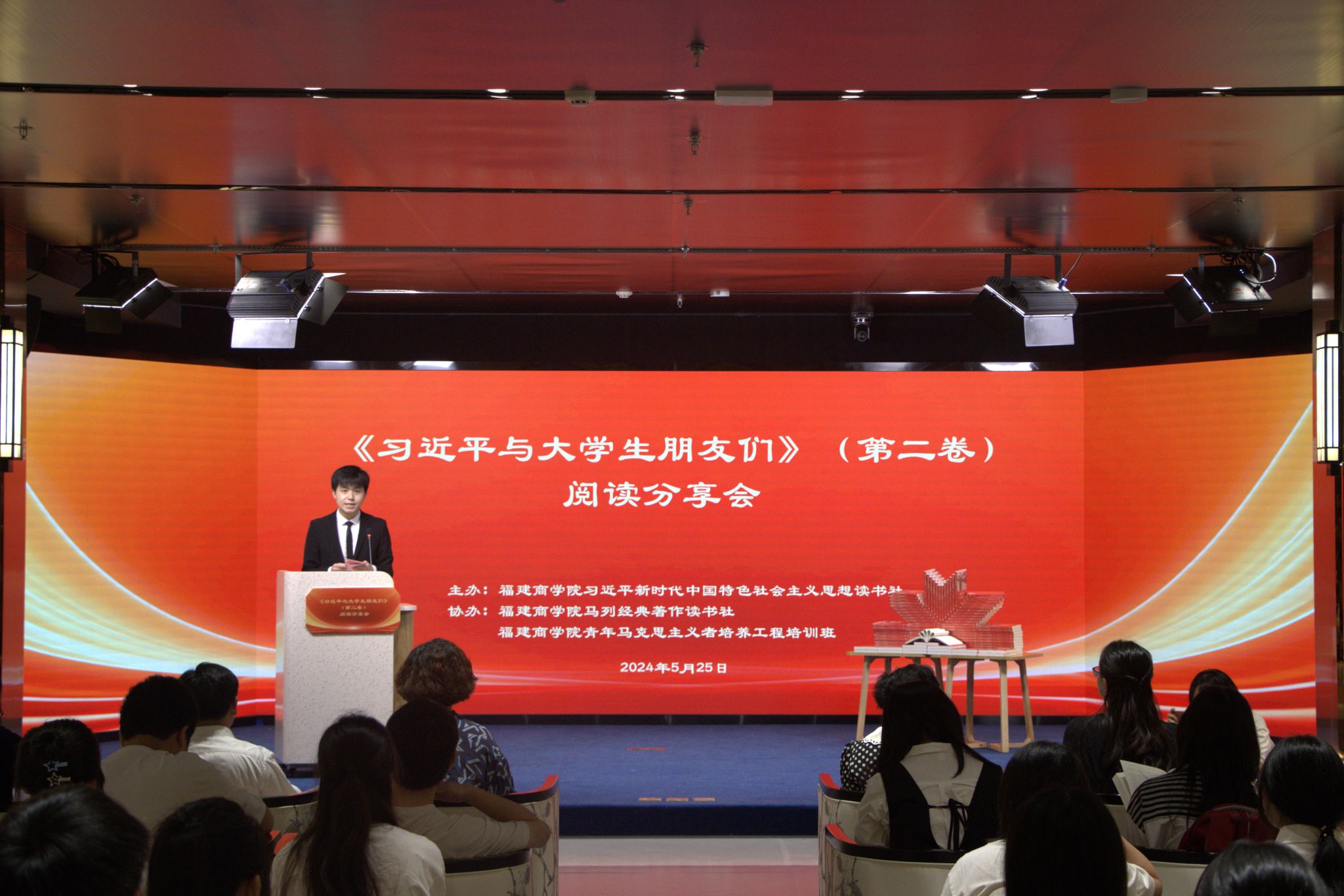 近日,金年会习近平新时代中国特色社会主义思想读书社、马列经典著作读书社、青年马克思主义者培养工程培训班在新华书店(福州安泰图书城)举办了《习近平与大学生朋友们》(第二卷)阅读分享会。副校长林文艺出席活动,读书社师生、“青马班”学员等参加分享会。
