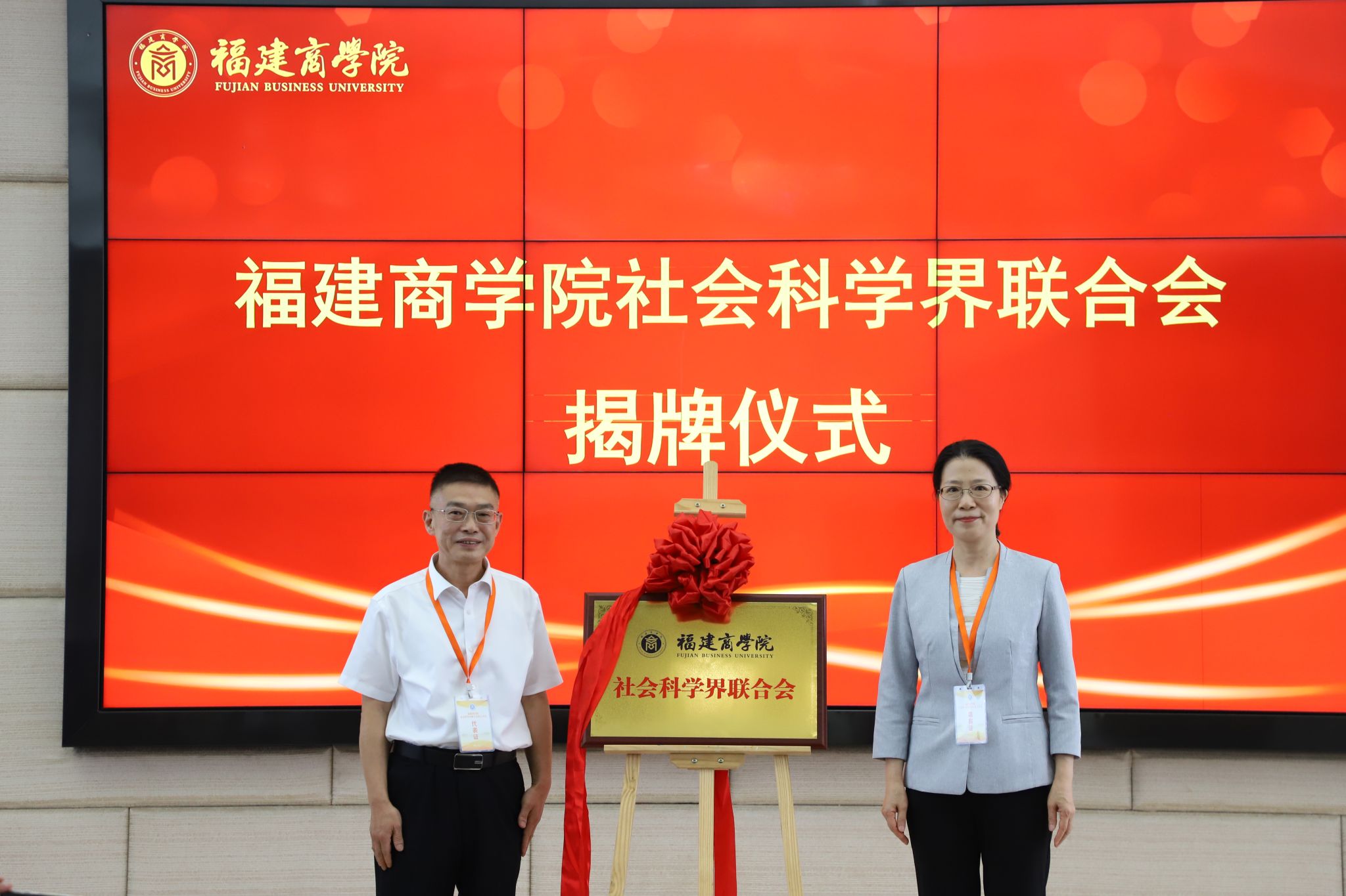 省社科联党组书记、副主席林蔚芬和校党委书记吴访益共同为“金年会jinnianhuicom社会科学界联合会”揭牌