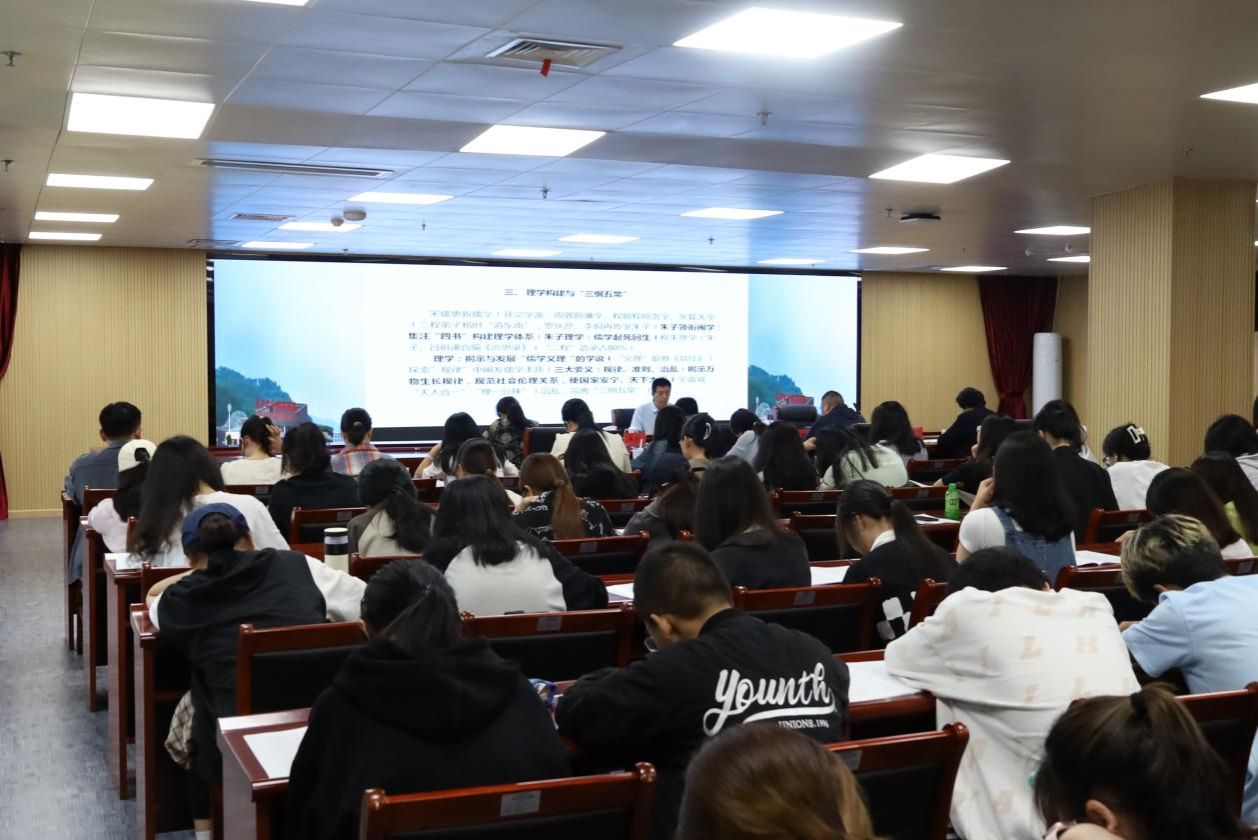 5月21日下午,(中国)朱子学会顾问、全省高校思想政治理论课特聘教授、福建省委省直机关工委原常务副书记朱清莅临金年会作《在中华民族伟大复兴进程中自觉弘扬优秀传统文化——刍论朱子理学及其转化创新》专题学习报告。传媒与会展学院全体教职工、学生党员和入党积极分子参加学习。