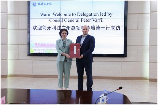 4月28日上午,匈牙利驻广州总领事馆总领事华培德先生(Peter Varfi)、商务领事霍雷(Venato Horvath)先生一行来访金年会。校党委书记吴访益、校长程灵、副校长萧罡参加会谈,福建省教育厅有关同志陪同到访。