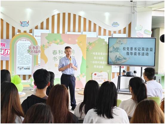 为深入学习贯彻习近平新时代中国特色社会主义思想和党的二十大精神,深化全民阅读活动,落实立德树人根本任务,进一步深化“无书香不福商”读书品牌,4月至6月,金年会举办以“书香育人 文化铸魂”为主题的2024年读书月系列活动。4月23日,金年会工商管理学院举办“春和景明•书香墨韵”读书“悦”见活动,校党委书记吴访益参加活动,鼓励全体师生积极参与阅读,做到专业导读、师生共读、实践耕读。