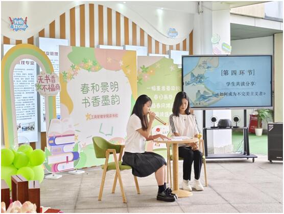 在师生读书分享环节中,讲述了《简爱》中女性独立精神对自己的激励,剖析《如何成为不完美主义者》中对过程和结果的论断,从《瓦尔登湖》中汲取到人与自然和谐共生的理念。师生们以扣人心弦的解读,将人生阅历与阅读的喜悦交织一体,引领听众宛如置身于浩瀚书海之中,体验了人间温情的流淌和书籍所蕴含的人生哲理。