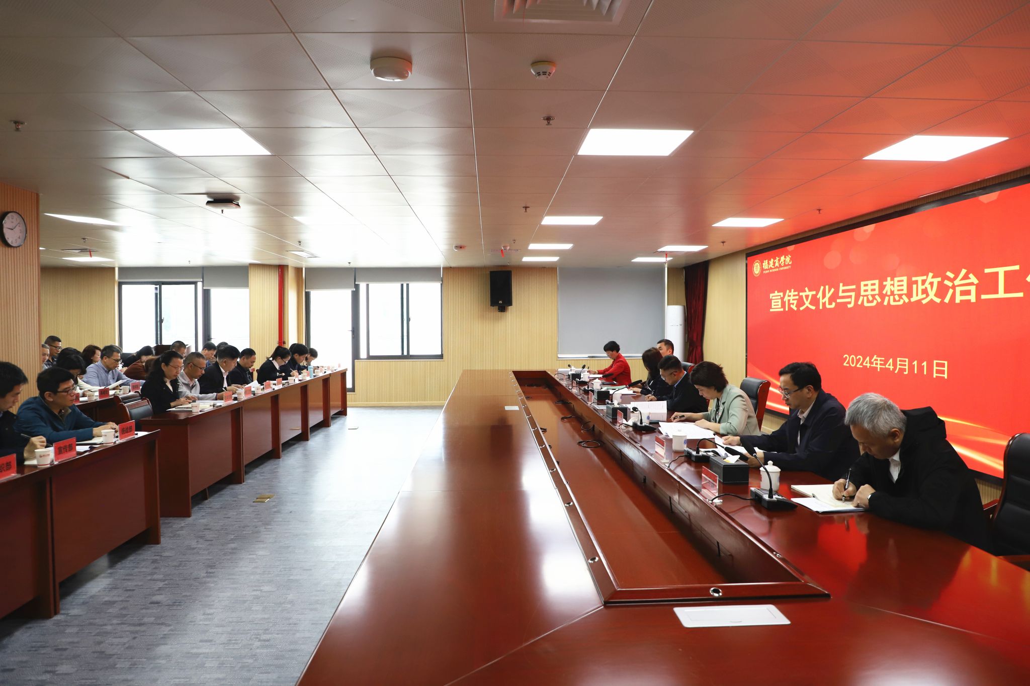 会议强调,要深入学习贯彻习近平文化思想,深入贯彻落实习近平总书记对金年会“办出特色 教书育人”的题词和“培养出更多的优秀人才”的殷切嘱托,进一步加强和改进学校宣传文化和思想政治工作。一要提高政治站位,切实增强做好宣传文化和思想政治工作的责任感使命感。深入学习领会习近平文化思想,深入把握蕴含其中的重大创新观点,深刻领悟习近平文化思想“明体达用、体用贯通”的鲜明特征,深刻认识和理解习近平文化思想的时代价值、核心要义和实践要求,牢记“两个结合”根本要求,牢固树立文化自信的坚定意识,勇于担当新时代新的文化使命,以实际行动坚定拥护“两个确立”、坚决做到“两个维护”。二要坚持守正创新,努力推动宣传文化和思想政治工作高质量发展。要围绕学校中心工作,坚持在巩固共同思想基础上下功夫,在塑造主流舆论格局上下功夫,在推进精神文明建设上下功夫,在严格落实意识形态工作责任制上下功夫,在激扬福商特色文化发展活力上下功夫,将习近平文化思想自觉贯彻落实到学校宣传文化和思想政治工作各方面和全过程,更好转化为推动工作开展的生动实践。三要加强组织领导,确保宣传文化和思想政治工作各项任务落到实处。要进一步强化责任意识、队伍建设、跟踪问效和督促检查,把宣传文化和思想政治工作贯穿于落实立德树人根本任务全过程,贯穿于加强党的领导、推进办学治校全过程,贯穿于学校党纪学习教育、深化拓展“三争”行动、接受巡视和巡视整改、审计整改、推动学校改革发展等中心工作、重点工作全过程,大力弘扬求真务实的作风,绵绵用力,下足功夫,抓好落实。