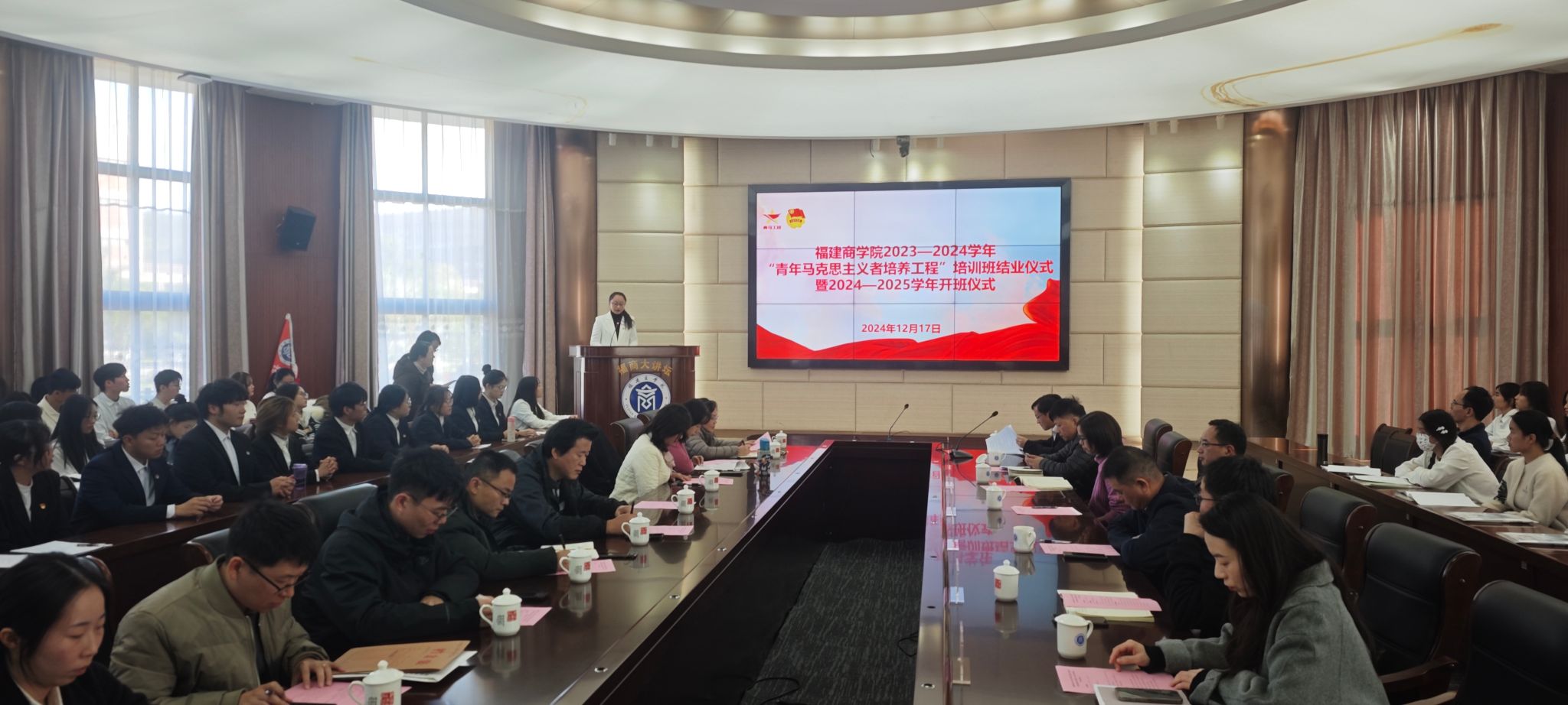 12月17日,金年会举行2023-2024学年青年马克思主义者培养工程培训班结业仪式暨2024-2025学年培训班开班仪式。校党委副书记蒲文庆及相关单位代表、各二级学院党委副书记、团委负责人、“青马班”新老学员参加了开班仪式。