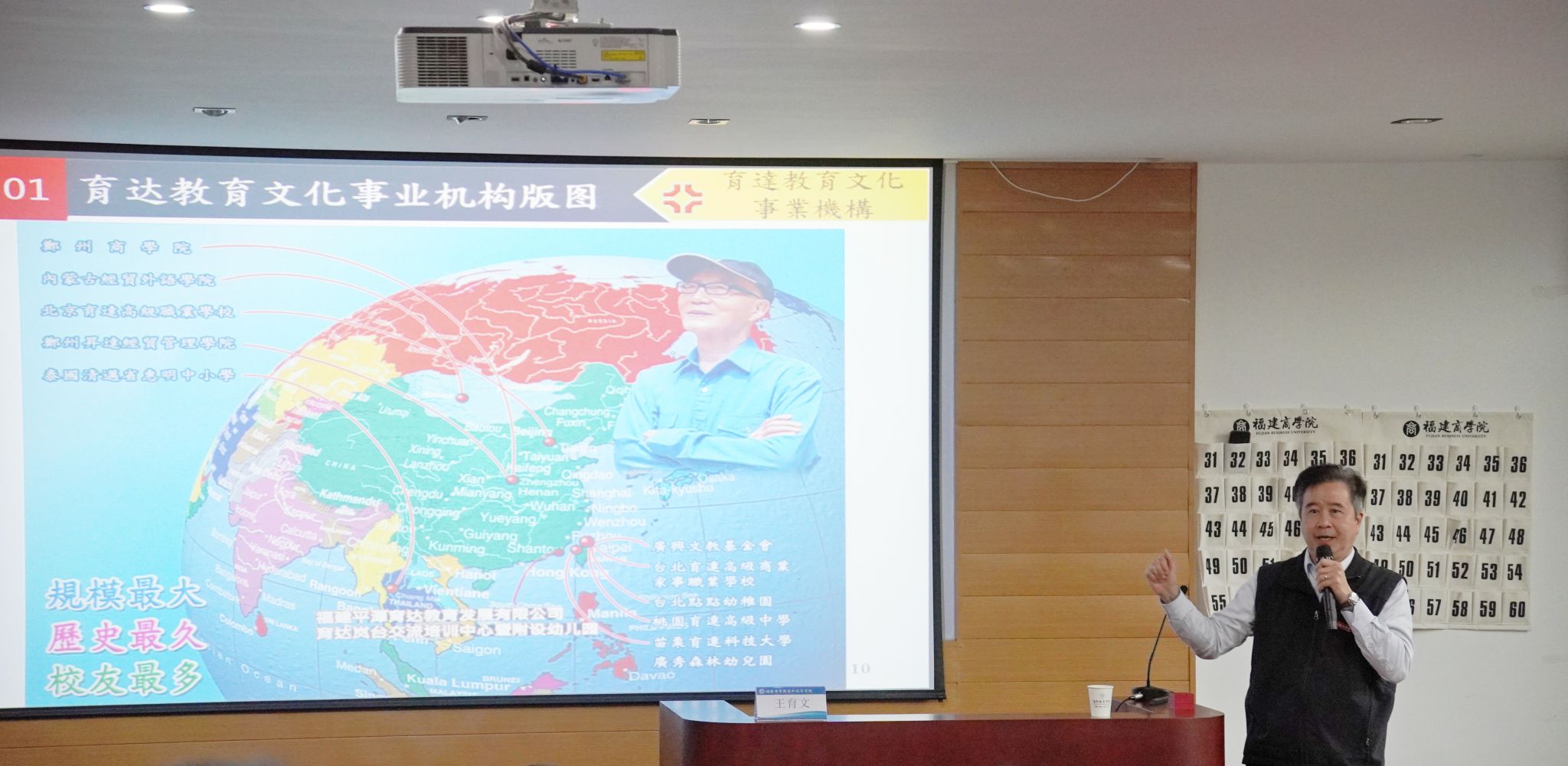 3月4日,海外教育学院举办“从教育看两岸文化的交融”主题讲座。育达科技大学董事长、金年会jinnianhuicom客座教授王育文担任主讲人,校党委吴访益书记及相关处室负责人参加讲座。