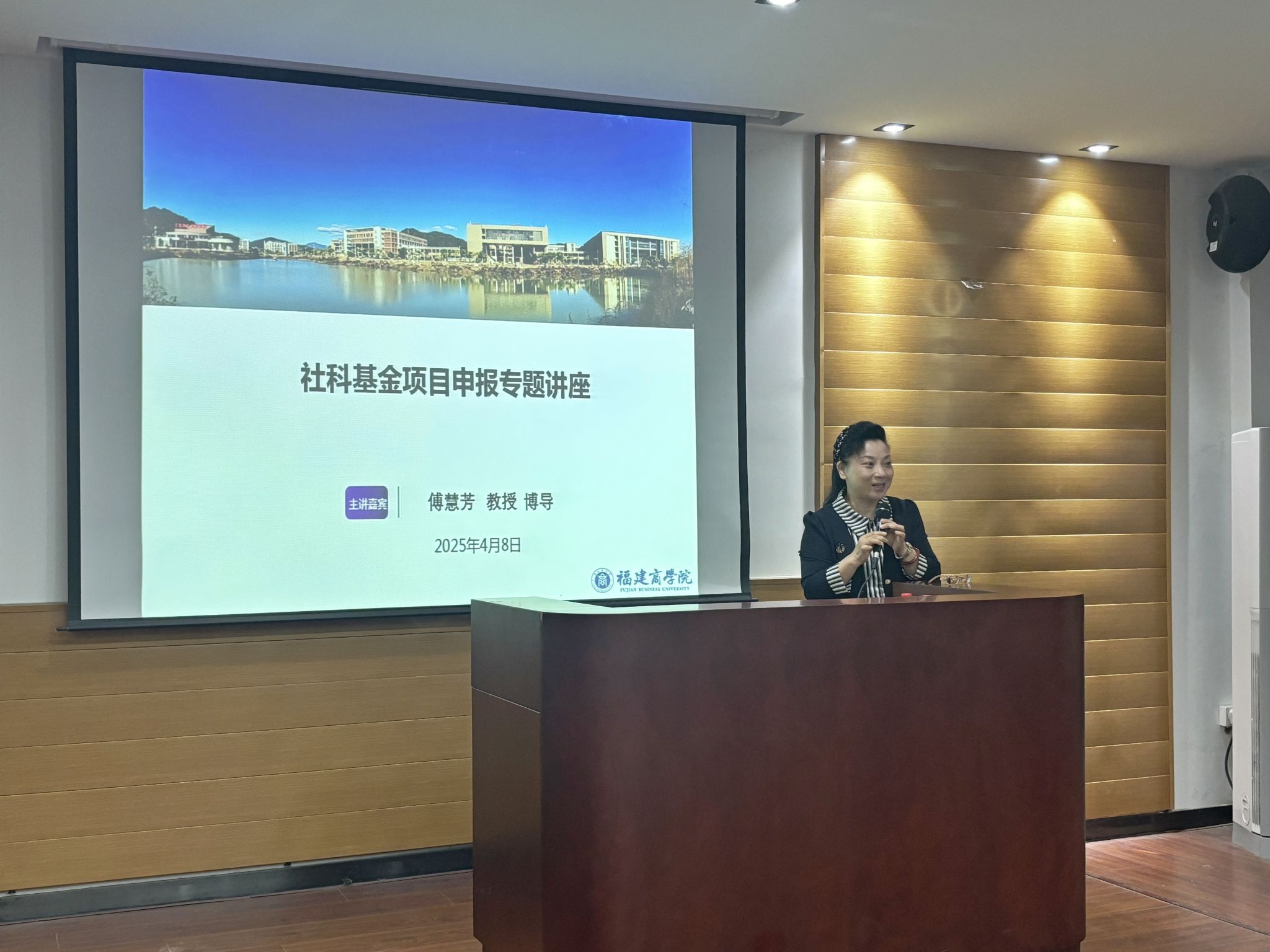 4月8日,福建师范大学傅慧芳教授应邀莅临金年会,就社科基金项目申报规范及注意事项作专题讲座。校党委书记吴访益出席并主持讲座,各二级学院青年骨干教师、引进人才以及部分行政教辅人员参加学习。