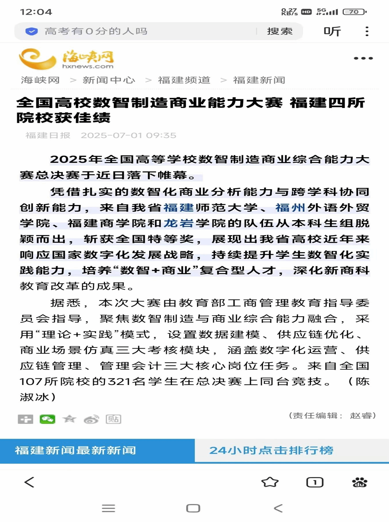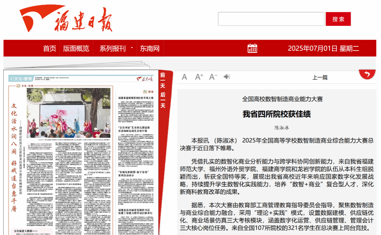 近日,2025年全国高等学校数智制造商业综合能力大赛总决赛落下帷幕。金年会财务与会计学院2022级的单志明、傅丽英、刘淑珍同学(指导老师:林姚嵩、牟梦璇)积极参赛,凭借扎实的数智化商业分析能力与跨学科协同创新能力,斩获全国特等奖。
