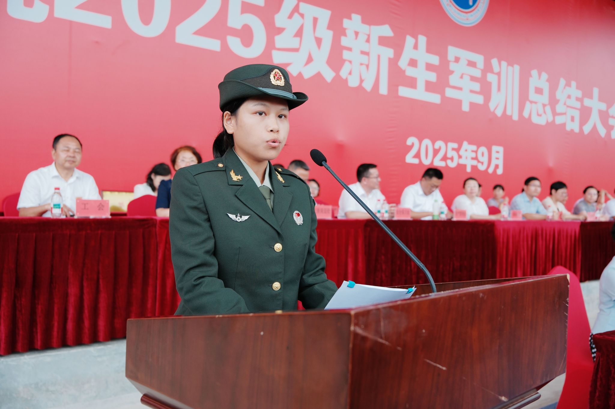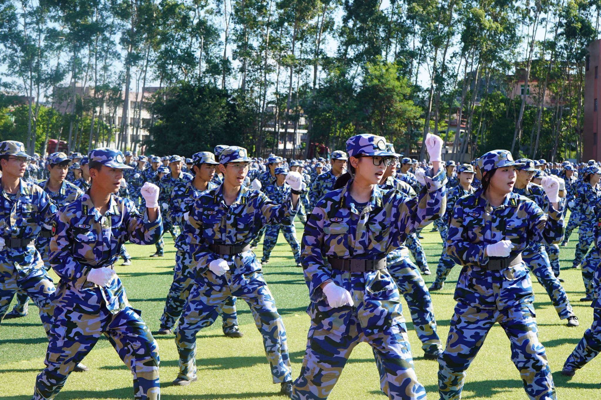 全校10个二级学院的新生步伐整齐、精神抖擞地走过主席台接受检阅。分列式、军体拳、刺杀操方阵表演、战术方阵表演、军歌大合唱等精彩纷呈,充分展现了福商学子的军训成果和昂扬风貌。