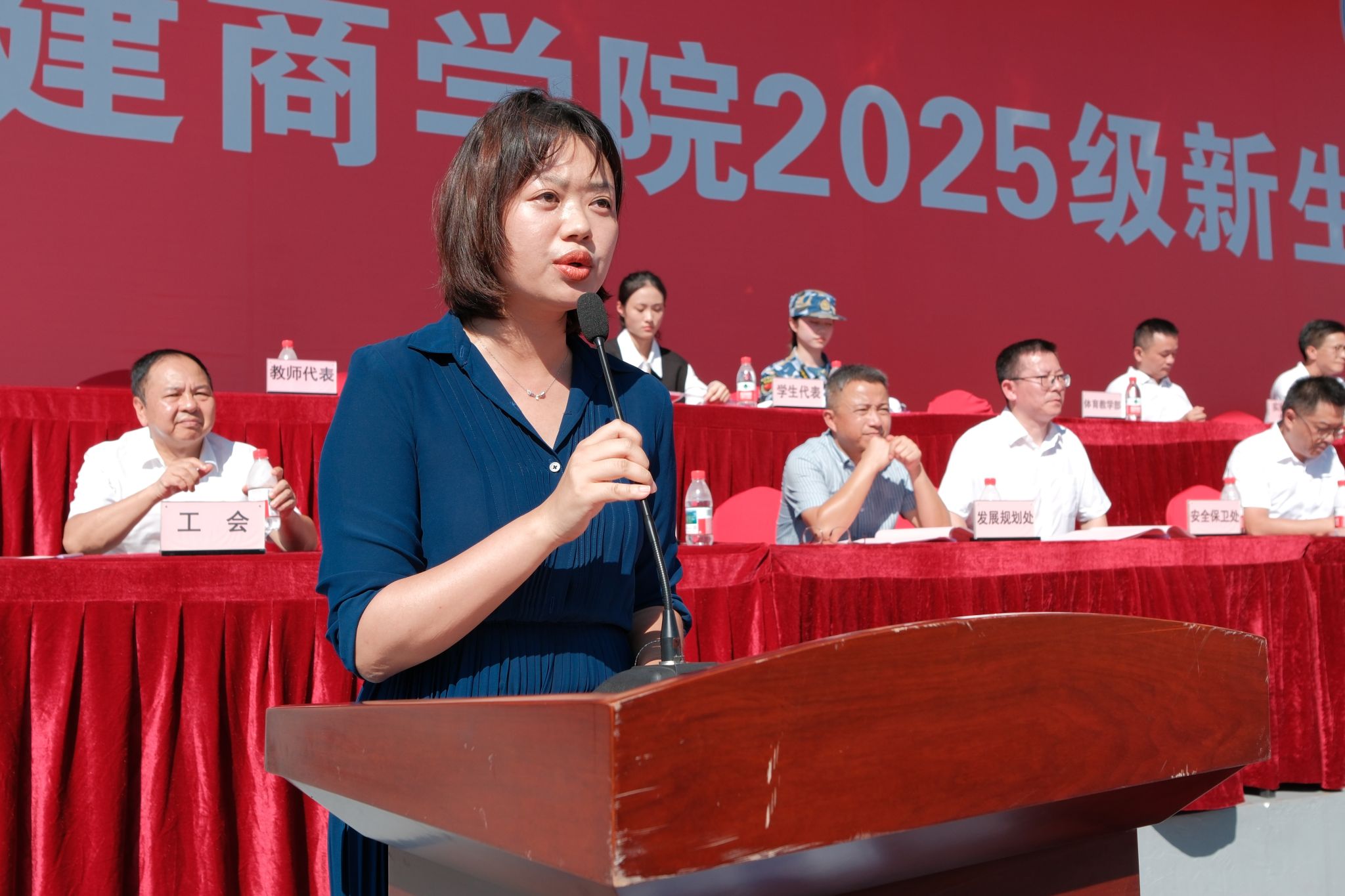 校长程灵以“在福商书写‘有意义、有风度、有成果’的青春答卷”为题发表了热情洋溢的讲话,她向2025级新生提出三点希望。一是从“有意思”到“有意义”,做善学善思的“追梦人”。要以“善学”夯实根基,用“善思”激活实践,让每一个片刻因学习思考而深刻,让每一次出发因热爱笃定而持久,真正成为善学善思的新时代“追梦人”。二是在“有难度”中体现“有风度”,做奋勇争先的“攀登者”。主动参与到学校“申硕攻坚”中来,将个人的成长融入学校发展蓝图,在每一次攀登中展现韧性、格局与胸怀,共同书写属于福商人的奋进篇章。三是将“有结果”提升为“有成果”,做向新而行的“实干家”。坚持求知“真学问”,做到知行合一、融会贯通,练好“真功夫”,以久久为功的定力提升专业技能和创新本领。