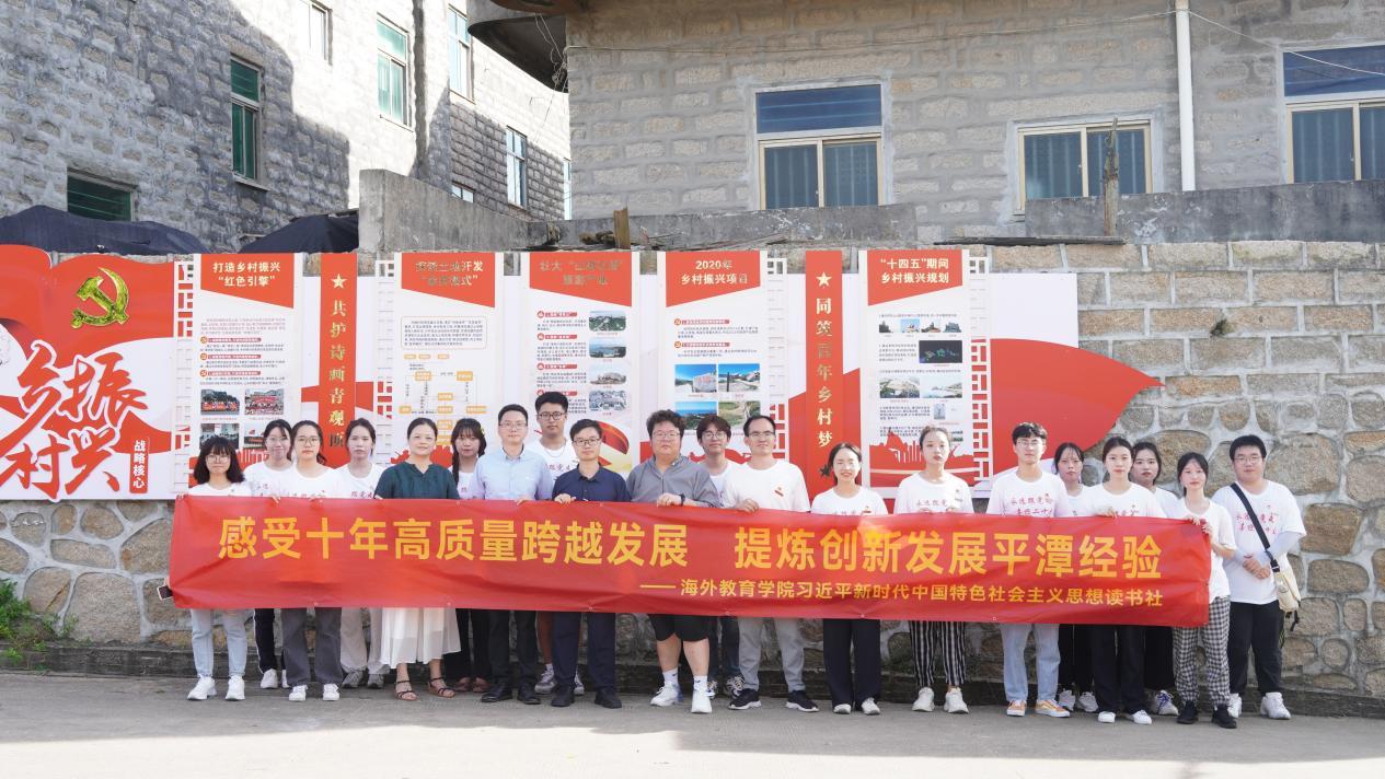 习近平总书记曾多次到平潭考察,并作出的一系列重要指示批示精神,为平潭开放开发提供了前进方向、根本遵循。海外教育学院深入平潭综合实验区,开展“感受十年高质量跨越发展,提炼创新发展平潭经验”主题社会实践活动,亲身实践“一岛两窗三区”的战略蓝图建设。实践队参观了平潭创新研究院、经济发展局、苏菲亚幼儿园等企事业单位,对澳前村、青观顶村、右营社区等地进行调研,探寻十八大以来平潭的沧海巨变。实践队一行走进大坪村,向村民了解习近平总书记在福建任职时三进大坪村的故事。以村、企为例“解剖麻雀”,实践队通过用眼睛看、用耳朵听、用心感悟,切实感受到平潭的十年飞跃和广阔未来。“海丝文化”实践队赴闽安村开展“采访海丝文化传播者,感悟新时代振兴使命”“共读海丝故事,传承文化精神”等系列活动,拜访杨成和、池秋荣2位海丝文化“传播者”,深寻闽安齐天府、迥龙桥、闽安楼“海上丝绸之路“的重要节点,讲述“海丝故事”,挖掘闽安千年海丝文化,助力“申遗”工作,传承闽安优秀传统文化。
