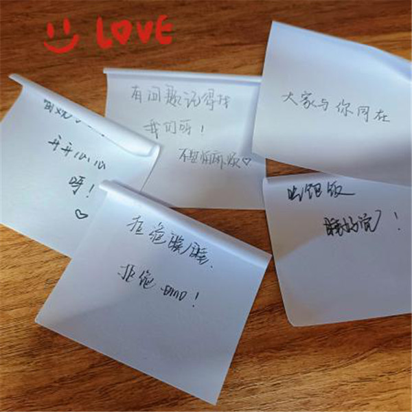 莆田学院严格落实“点对点”出行和日常流动的闭环管理,采取多种暖心的措施,尽可能降低疫情给师生学习生活带来的影响。“食堂延长了供餐时间,还根据师生的意见做了很多种套餐。”后勤处副处长朱晓莹表示。“每天开开心心。”“张开嘴,笑一个。”“我们与你同在!”……虽然没办法面对面交流,每个送餐的袋子里,都附上了写着暖心话语的小纸条,传递着爱,传递着信心。