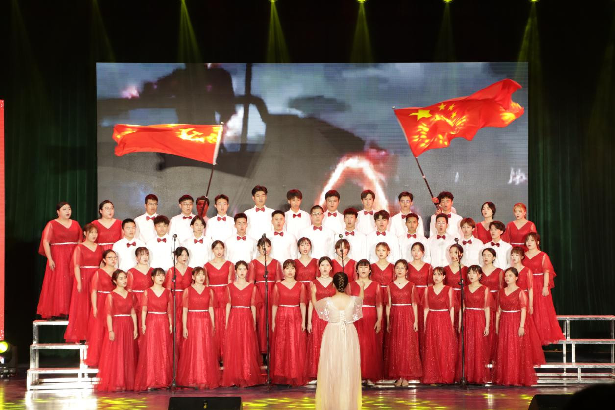 合唱比赛中,学子们用积极饱满的热情和高亢嘹亮的歌声重温气壮山河的革命豪情,赞美伟大的中国共产党。激情澎湃的旋律传递了爱党爱国情怀和民族自豪感,也唱响了对党和国家的祝福。