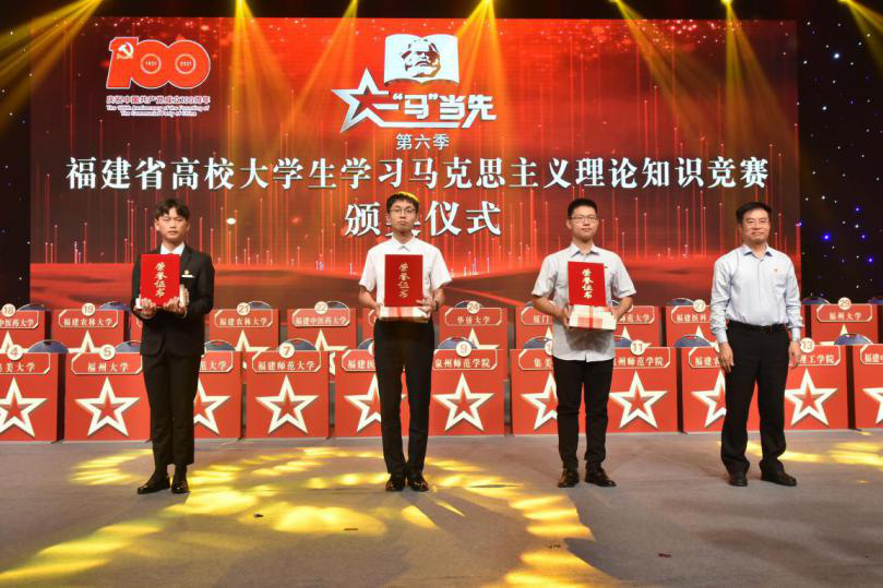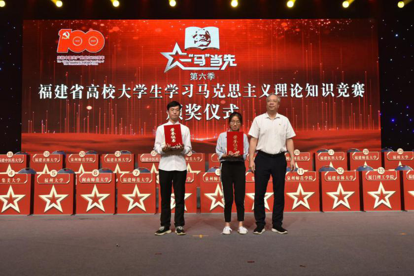 为热烈庆祝中国共产党成立100周年,6月27日,由省委教育工委主办,省高校思想政治理论课教学指导委员会、福建教育电视台承办的第六季福建省高校大学生学习马克思主义理论“一‘马’当先”知识竞赛总决赛在福建师范大学举行。省委常委周联清出席总决赛,并为获奖选手颁奖。