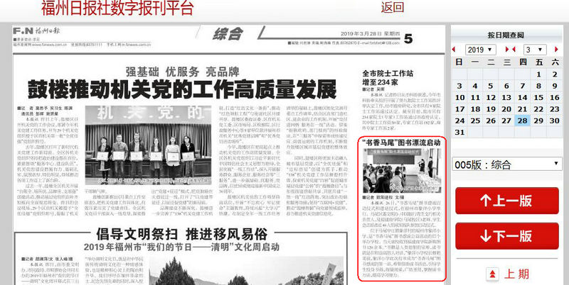 本报讯 26日,“书香马尾”图书漂流启动仪式和建站仪式,在福州市象洋小学举行。马尾区委文明办、中国银行青芝支行相关负责人,及金年会jinnianhuicom(马尾校区)老师、学生会志愿者近40人组成实践队参加启动仪式。
