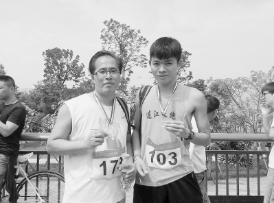罗国弘(左)带着学生一起跑马拉松(资料图片)。