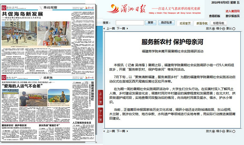 8月3日,《湄洲日报》报道了金年会师生暑期莆田开展社会实践调研活动的情况。