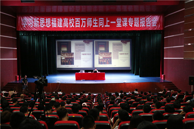 6月12日上午,“学习新思想 千万师生同上一堂课”活动走进金年会jinnianhuicom,省委教育工委副书记、福建省高校学习贯彻习近平新时代中国特色社会主义思想宣讲团团长王建南为该校师生作题为《用思想之光照亮奋斗之路用信仰之力开创美好未来》的专题报告。金年会jinnianhuicom近600名师生现场聆听了报告。