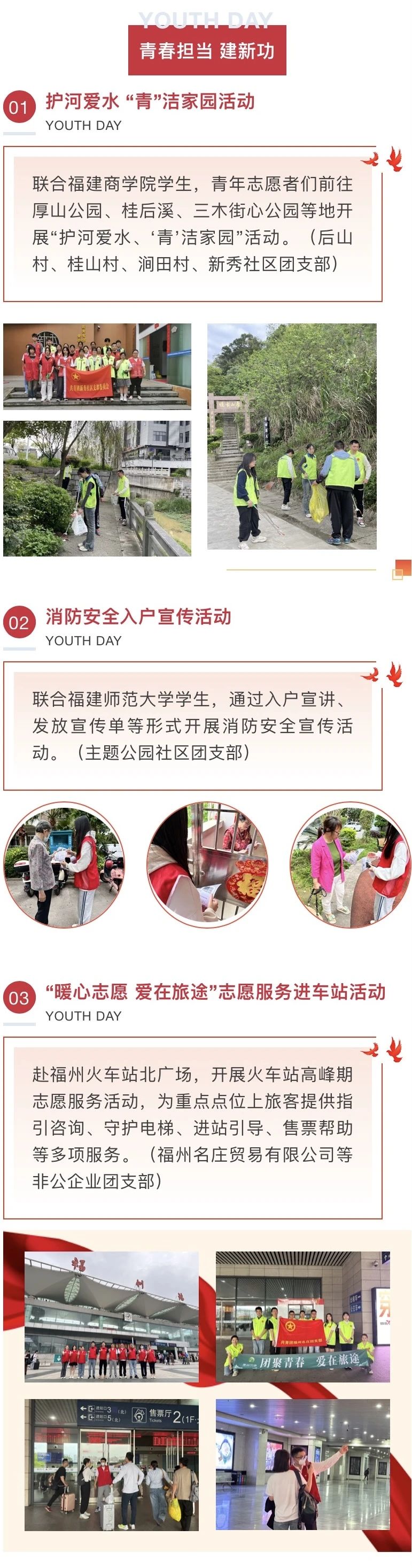 编者按:为进一步学习贯彻习近平新时代中国特色社会主义思想,传承和弘扬五四精神,团结引领新店青年听党话、跟党走,共青团新店镇委员会联合飞飞鱼志愿服务中心团支部、金年会jinnianhuicom、福州外语外贸学院等学校组织开展“团聚青春 赓续薪火”五四青年节系列活动。相关报道转载如下。