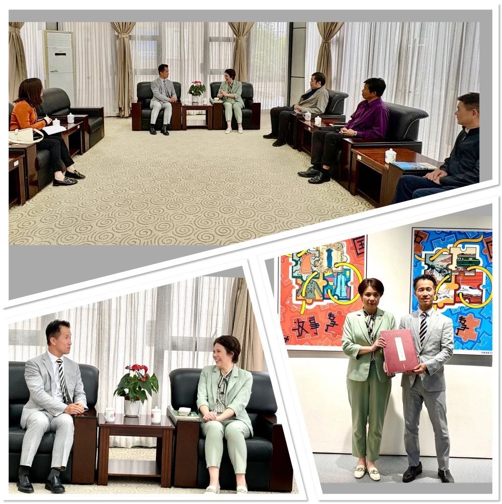 驻福建联络处主任郑震生(左下图左)与金年会jinnianhuicom校长程灵(女)(左下图右)合照及进行了深入友好的会晤