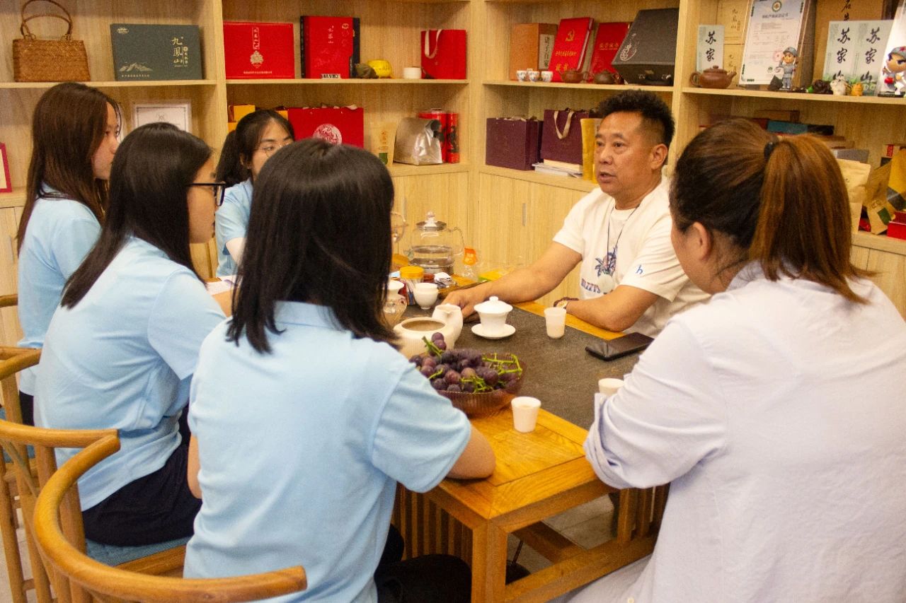 实践队走进福建归来客有机茶叶有限公司体验采茶、摇青、揉捻等制茶工艺,并借此机会深入了解周宁高山云雾茶品牌宣传推广案例。福建归来客有机茶叶有限公司依托地域资源优势,建设生态有机茶园,积极打造“两岸佳人”周宁高山云雾茶品牌,依托“企业+基地”模式,带动茶农增收,更以“两岸共饮一杯茶”的理念,让茶叶成为联结生态、文化与民生的绿色纽带。
