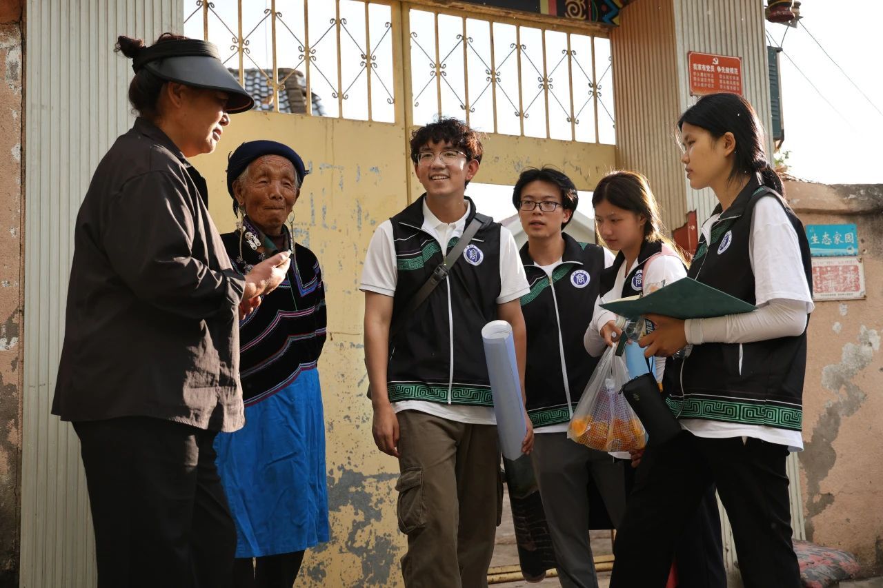 实践队员们在与村中老人的交流中,发现许多老人从未走出过大山,却对首都北京充满向往。队员们充分发挥传媒专业优势,连夜策划“我和天安门合个影”特别活动。他们拉起“推普筑梦 共庆华诞”的横幅,用绿幕技术为老人们“打卡”天安门、长城等地标。“奶奶,您看镜头里的您站在天安门前多精神!”当82岁的莫色奶奶看到自己身穿彝族服饰与天安门同框的照片时,浑浊的眼睛里泛起泪光:“这辈子最大的心愿,就是让孙子带我去北京看看,谢谢你们让我提前圆梦!”