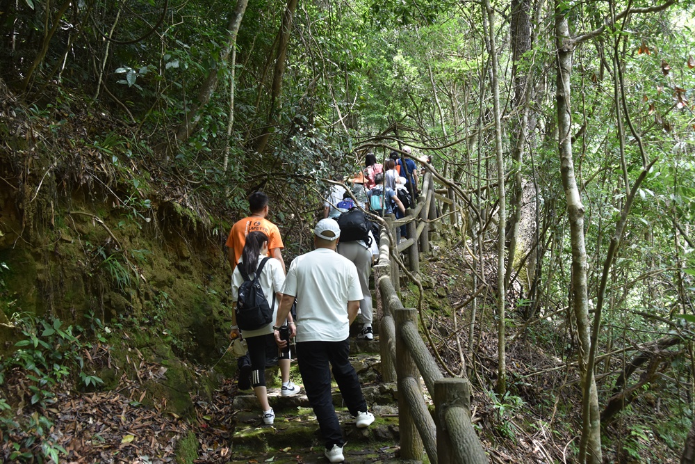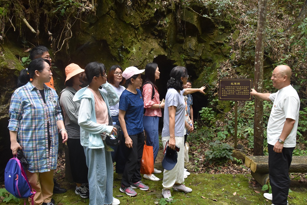 支部党员首先来到迪口镇西坑村102亩红军林,奋力重走红军路。行进中,大家冒着盛夏酷暑,沿着崎岖陡峭山路,挥汗如雨,气喘吁吁,穿越茂密原始森林,一路前行。先后观看瞭望台、烈士墓与百年楠木林、红豆杉林、油杉林以及小龙泉、望红和青崖三个小瀑布及红军洞、观景台,探寻当年红军足迹,进行了一次深刻的革命洗礼。