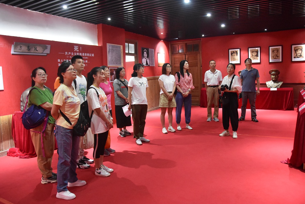 随后,各位党员前往迪口镇闽浙赣省委驻地纪念馆,首先面向党旗,庄严举起右手宣誓,重温入党誓词。随后,大家跟着讲解员,分别观看和听讲不忘初心、苦难记忆、光辉岁月、重温经典、绿水青山、浩气长存、壮怀豪情、红韵流长和只争朝夕等九个展馆陈列的史实。通过纪念馆里的一段段文字、一帧帧照片、一幅幅绘画、一件件实物等史实,并跟着讲解员唱响《闽北游击区革命歌谣》,体会“对党忠诚、敢为人先,不怕牺牲、无私奉献”革命斗争精神。各位党员心潮澎湃,纷纷表示要更加坚定理想信念,不忘初心跟党走,努力拼搏,为学校高质量发展多作贡献!