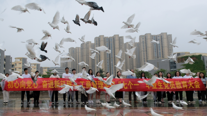 圆一次梦想。毕业生党员在学校广场放飞象征梦想与希望的白鸽。近百只鸽子承载着学子美好理想展翅翱翔,预示着毕业生党员将“志存高远向未来,干霄凌云终可期”。